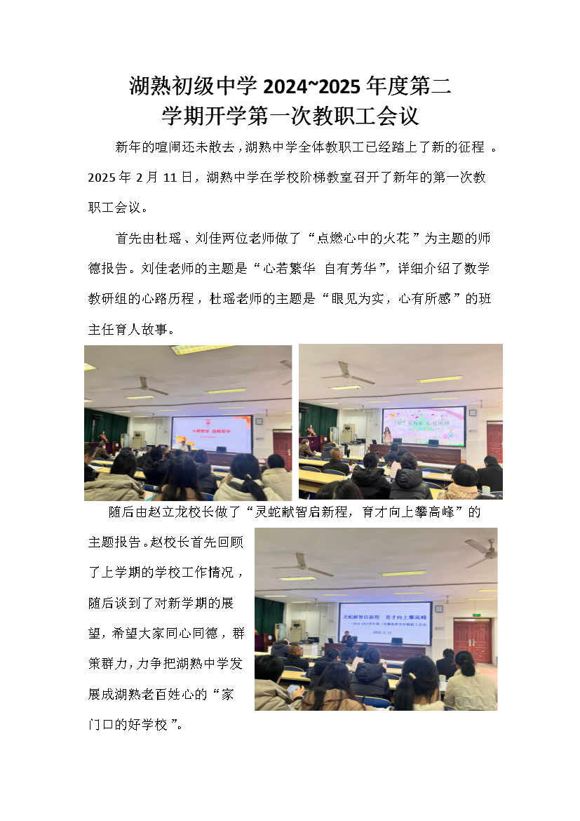 湖熟初级中学2024~2025年度第二 学期开学第一次教职工会议