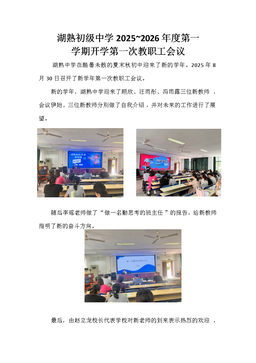 湖熟初级中学2025~2026年度第一 学期开学第一次教职工会议